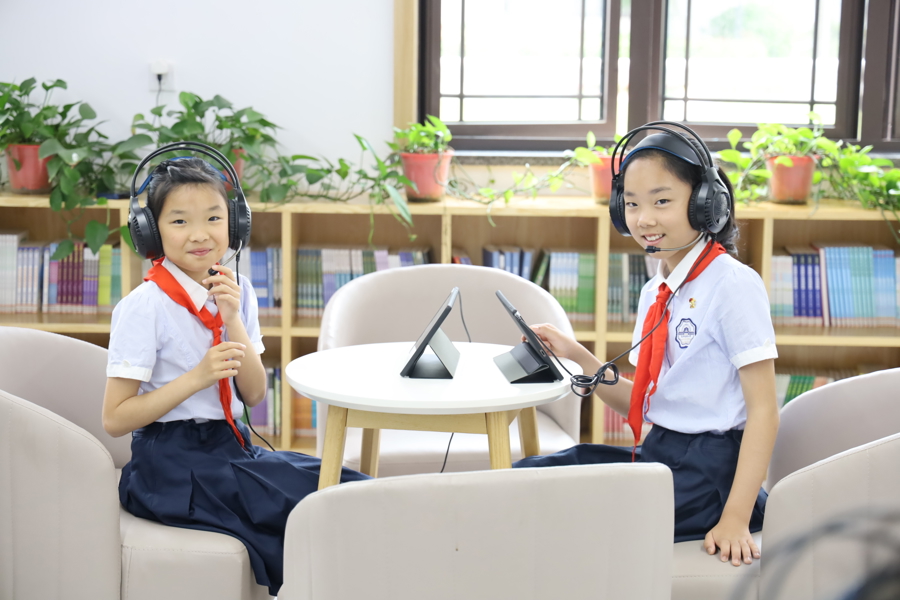 杭州市春晖小学的学生正在体验 AI英语对话课程,受访者 供图。